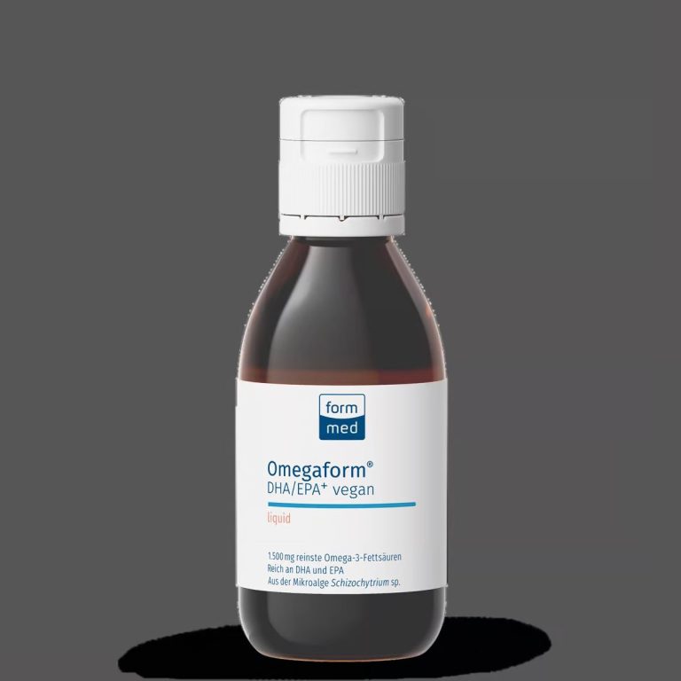 Omegaform® DHA/EPA+ vegan liquid ist ein veganes Präparat in flüssiger Form. Es enthält die Omega-3 Fettsäuren EPA (Eicosapentaensäure) und DHA (Docosahexaensäure) in reiner und wirksamer Form. Gewonnen werden diese durch Fermentation aus der Mikroalge Schizochytrium sp. Die natürlichen, gentechnikfreien Algen sind durch ihre Kultivierung besonders schadstoffarm.